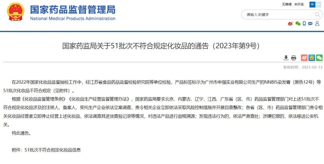 此次通报的51批次不符合规定化妆品多为染发、洗发、防晒、面膜类产品,抽检发现的主要问题是成分比对、菌落总数等不符合规定。