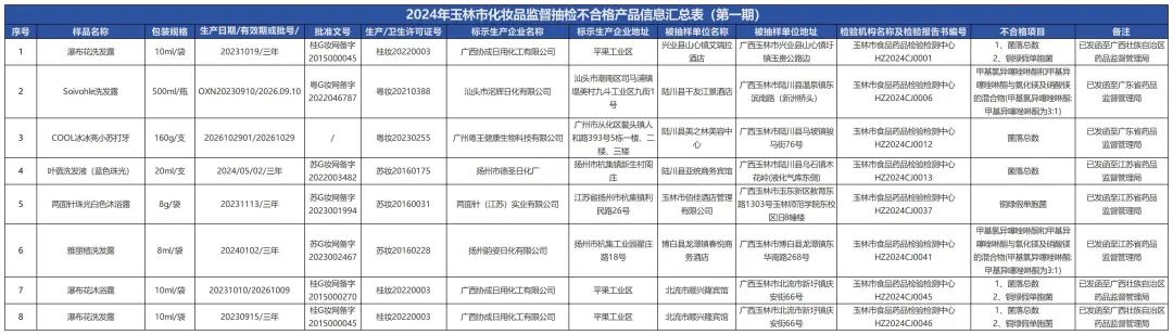 近期,玉林市市场监督管理局公布了一则化妆品监督抽检结果公告,具体情况如下。