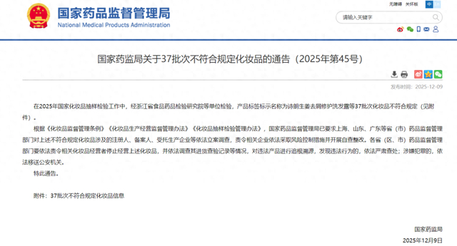 37批次不合格化妆品通告